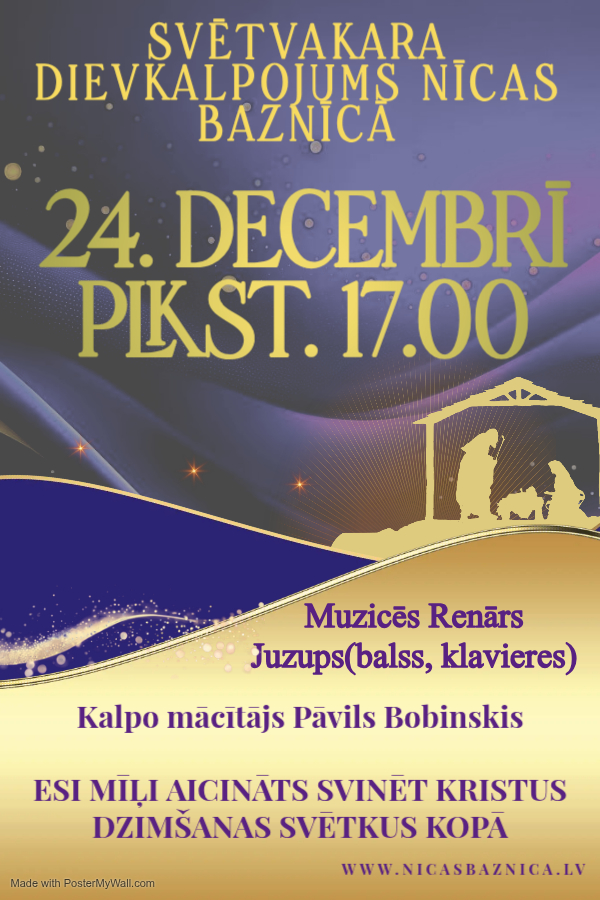 Aicinām uz Kristus dzimšanas svētku dievkalpojumu Nīcas baznīcā