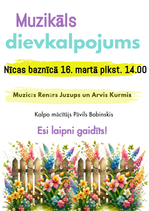 Aicinām uz muzikālu dievkalpojumu 16. martā
