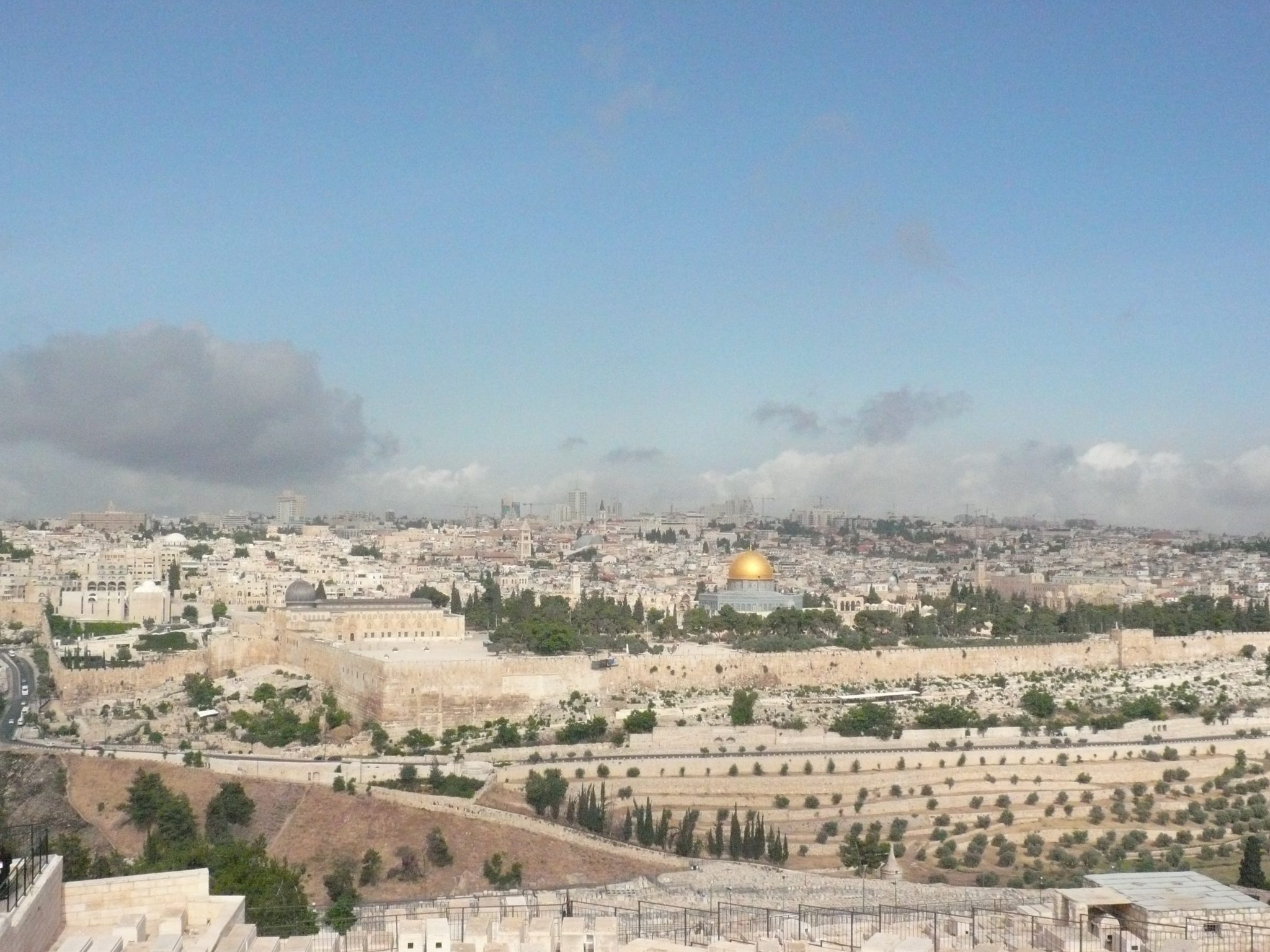 Skats uz Jeruzalemi no Olīvu kalna, no kura Jēzus tika uzņemts debesīs