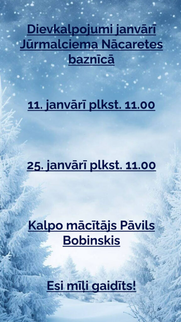 Tuvākais dievkalpojums – 11. janvārī plkst. 11.00