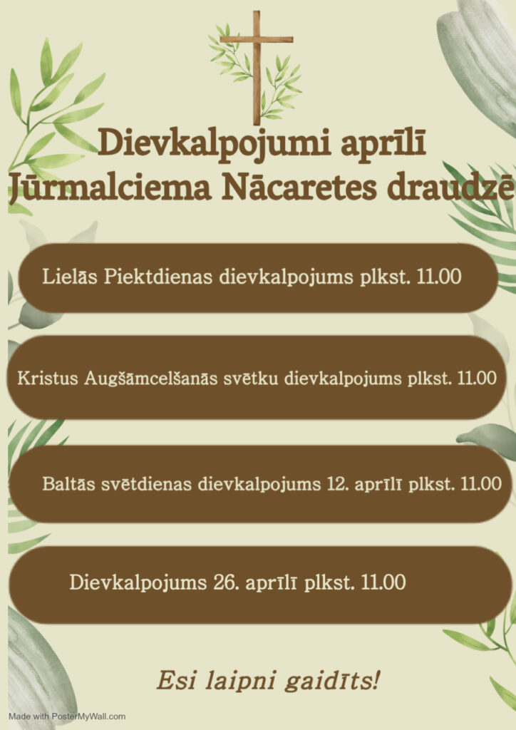 Tuvākais dievkalpojums – 3. aprīlī plkst. 11.00