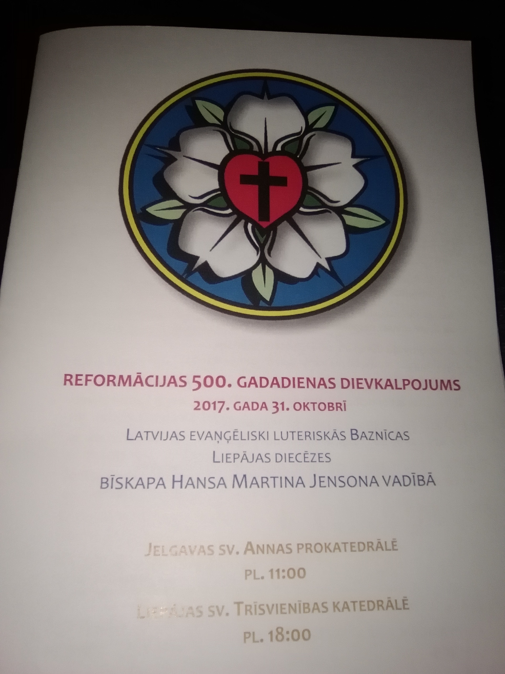 31.oktobra vakarā Liepājas Sv.Trīsvienības katedrālē pulcējās garīdznieki un kristīgā draudze,lai svinētu Reformācijas 500 gadu jubileju. Svinīgo dievkalpojumu vadīja Liepājas diecēzes bīskaps H.M.Jensons. Svētrunas pamatā tika iekļauts M.Lutera korālis “Nāc,draudze,topi līksma,dej” ,kurā tika izdziedāts un izrunāts ikvienas dvēseles personīgais reformācijas ceļš. Kopīgajā kalpojumā vienojās Grobiņas, Piltenes,Kuldīgas,Jelgavas iecirkņu garīdznieki.Piedalījās arī katoļu un metodistu konfesiju vadītāji V.Stulpins un E.Šneiders.